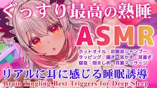 【ASMR】ぐ~っすり最高に眠れる。リアルに耳に感じる睡眠誘導!炭酸泉・ホットオイル・寝息・耳かき・耳裏 Brain melting Best Triggers for Sleep【周防パトラ 】