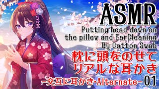 【ASMR】枕に頭をのせてリアルな耳かき-綿棒で交互に耳かき-#01【声なし・No Talking】